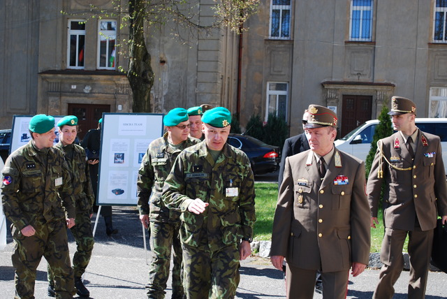 Během statické ukázky schopností chemického vojska doprovázel generále major Dohnálek.
