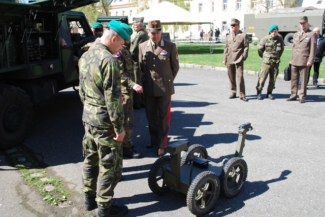 Generál Benkő si s velkým zájmem prohlédl průzkumného dálkově ovládaného robota.