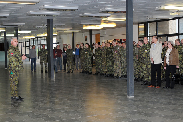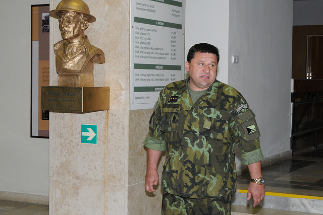 Velitel VeV-VA brig.gen. Ján Kožiak a hosté otevření expozice v učebních prostorách VeV-VA, včetně posluchačů důstojnického kurzu