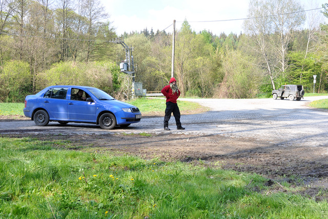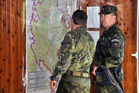 Velitel 9. ÚU plk.gšt. Radek Hasala při cvičení Messenger u mapy VVP Březina, která se změnila v imitovaný prostor nasazení v zahraniční operaci