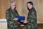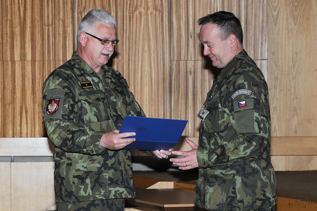 Velitel 9.ÚU AČR ISAF plk.gšt.Hasala přebírá certifikát o připravenosti k plnění operačního úkolu z rukou brig.gen.Kožiaka
