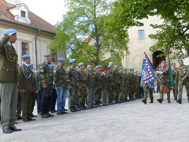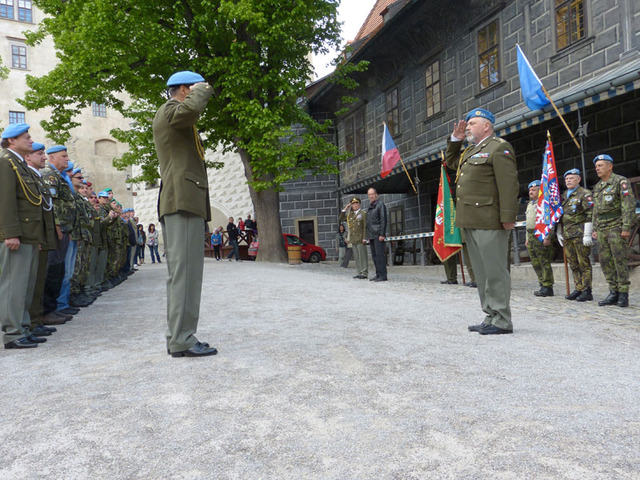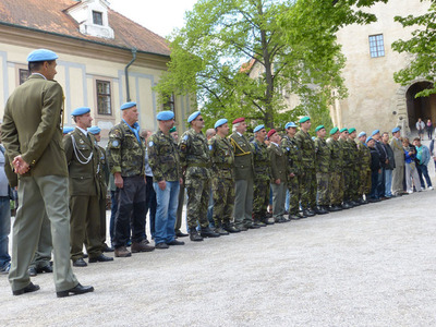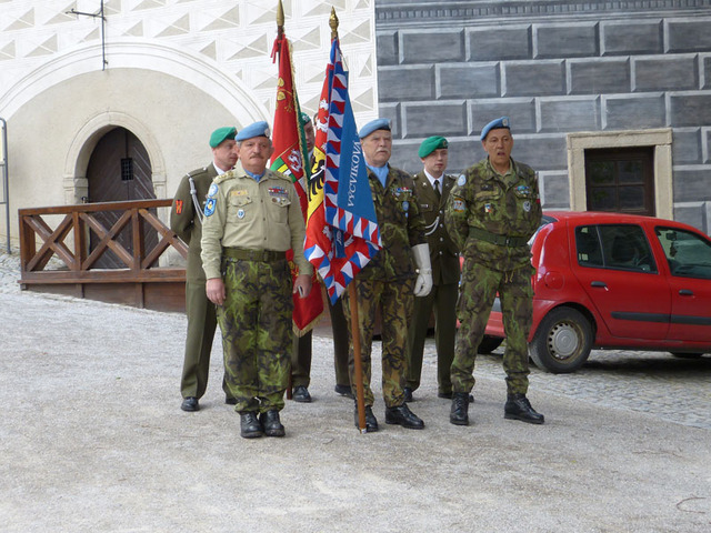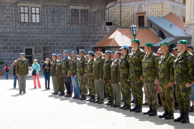 Spolu s modrými barety se setkání zůčastnili i příslušníci Aktivní zálohy při KVV v Českých Budějovicích. Také jejich bojový prapor zavlál nad Českým Krumlovem