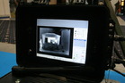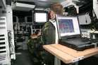 Četař Hozák právě cvičně provádí kamerový průzkum
