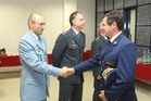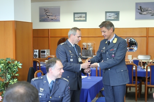 Zástupce velitele Vzdušných sil AČR brigádní generál Jaromír Šebesta (vlevo) přebírá pamětní plaketu NMR
