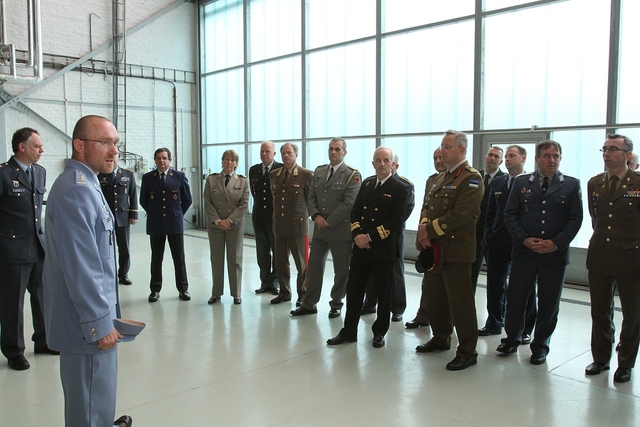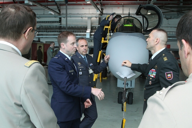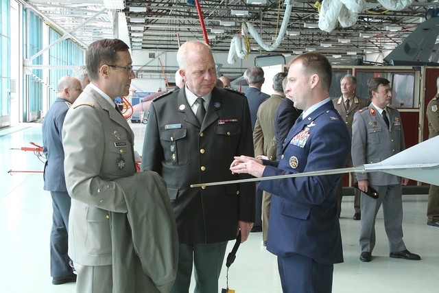 Velitel plk. Petr Hromek (třetí vlevo) v diskusi s národními přidělenci u letounů JAS-39 Gripen