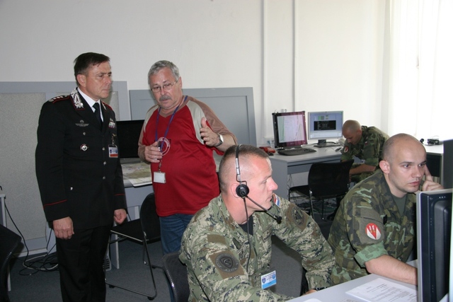 Plk. Vignola při návštěvě pracoviště operátorů ze 7. mb, kteří jsou nedílnou součástí cvičení