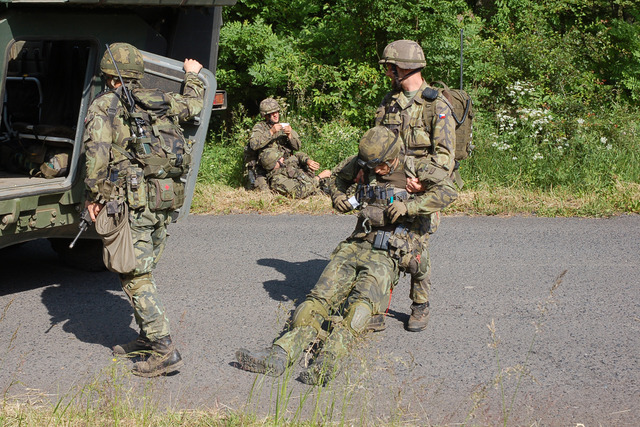 Simulace dopravní nehody při přesunu vozidel 42. mechanizovaného praporu 4. brigády rychlého nasazení