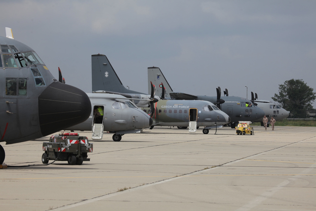 25.6.2014 Navádění letounu CASA C-295M na pojížděcí dráze