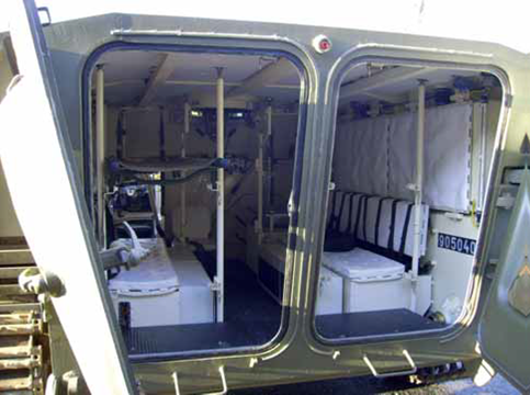 - upravený bojový prostor a prostor roje (demontáž střelecké věže a zbraňových systémů a vybudování zdravotnické nástavby se zvýšeným stropem korby),